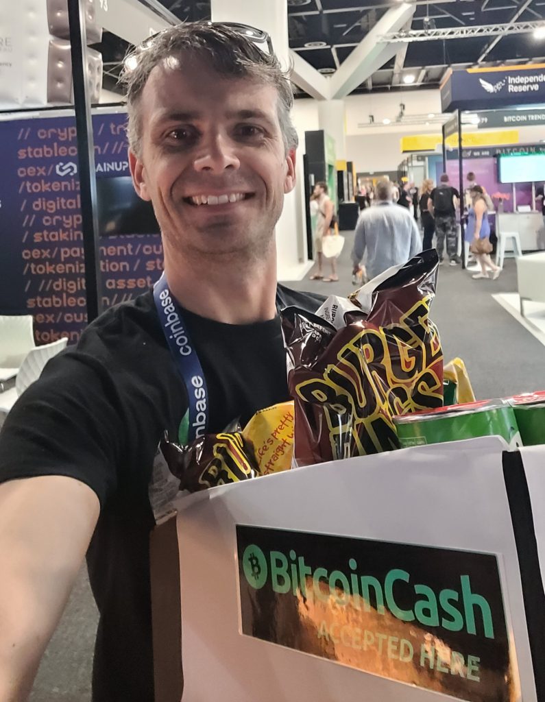 There was a lot of excitement at the 2025 Australian Crypto Convention (@AusCryptoCon). It’s typically hosted in Melbourne, Gold Coast or, for my first visit this year, Sydney. While I am generally interested in peer-to-peer crypto in Bitcoin Cash (which doesn’t seem very popular nowadays), I wanted to make sure I wasn’t living in a bubble and hopefully find interesting projects in the wider community. The two-day weekend conference is all about networking with dedicated tables, lounges and vendor booths to meet staff from exchanges, mining suppliers and wallet providers etc. I was a little relieved to see there were other individuals in Australia who also thought crypto was important enough to attend such an event (not just B2B). This year there were lectures running in five theatres, often simultaneously. Before the event, I advertised the conference in our BCH Australian Telegram group, so I was keen to meet some bcashers in-person.